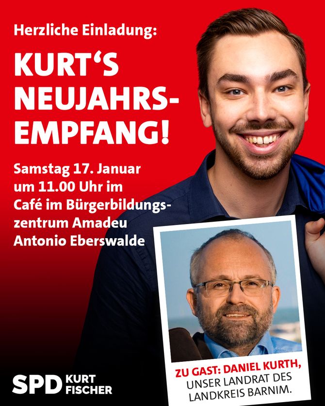 „Seit September 2024 darf ich mich als Ihr SPD-Landtagsabgeordneter für unsere Region und unsere Themen im Brandenburger Landtag starkmachen. Das ist mir eine große Ehre, besondere Verantwortung und eine tagtägliche Freude. Zentraler Bestandteil meiner Arbeit als Abgeordneter ist das gemeinsame Gespräch mit den Bürgerinnen und Bürgern. Mit ‚Kaffee. Kuchen. Kurt.‘ als Sprechstunde vor Ort möchte ich die Möglichkeit geben, unkompliziert und locker mit mir ins Gespräch zu kommen und über die aktuellen Herausforderungen und Themen miteinander zu diskutieren. Für Kaffee und Kuchen ist selbstverständlich dabei durch mich gesorgt.